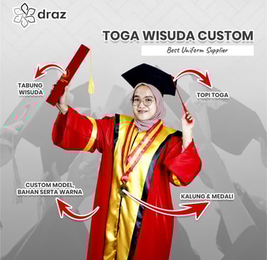 Toko Draz melayani pembuatan jas almamater, toga wisuda, seragam sekolah, seragam kerja, dan jas laboratorium dengan kualitas unggulan. Dikerjakan oleh tim profesional berpengalaman 12 tahun, hasil rapi dan presisi. Melayani custom mulai 24 pcs, desain bebas, dan pengiriman ke seluruh Indonesia.